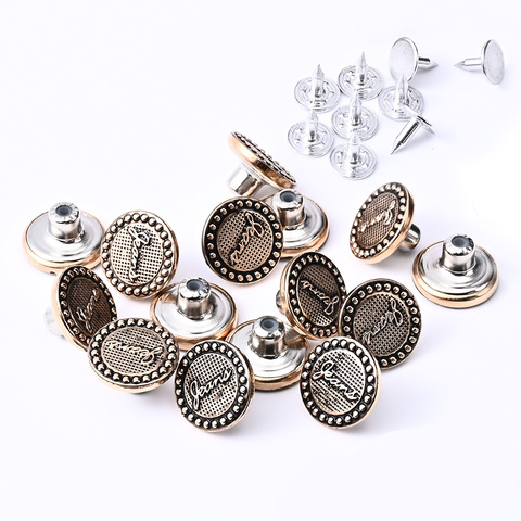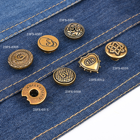 ビンテージ服金属彫刻ボタンカスタムパターン付きデニムジーンズボタンとリベット