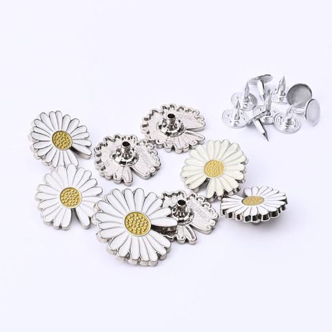 メタルジーンズボタンエンボス加工デイジー花柄デニムジャケット用ジーンズ服